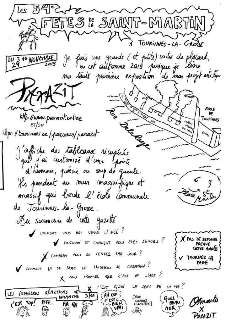 Lors de la première exposition officielle de Parazit, je rédige une bande dessinées de comment est né mon idée de Parazit.