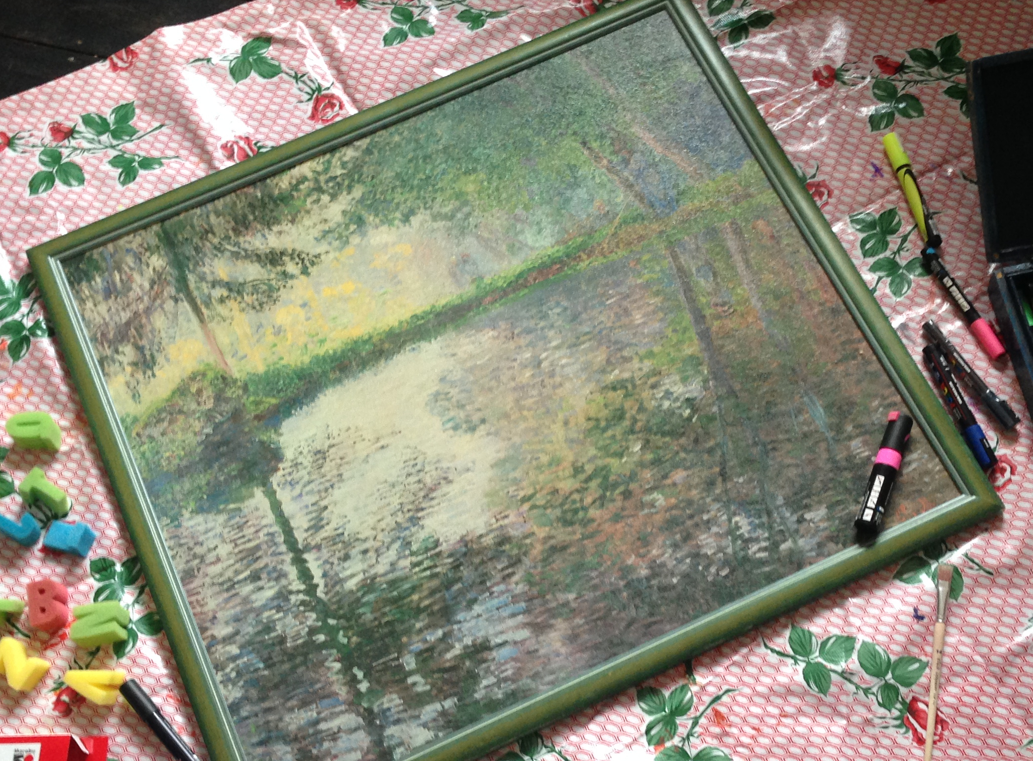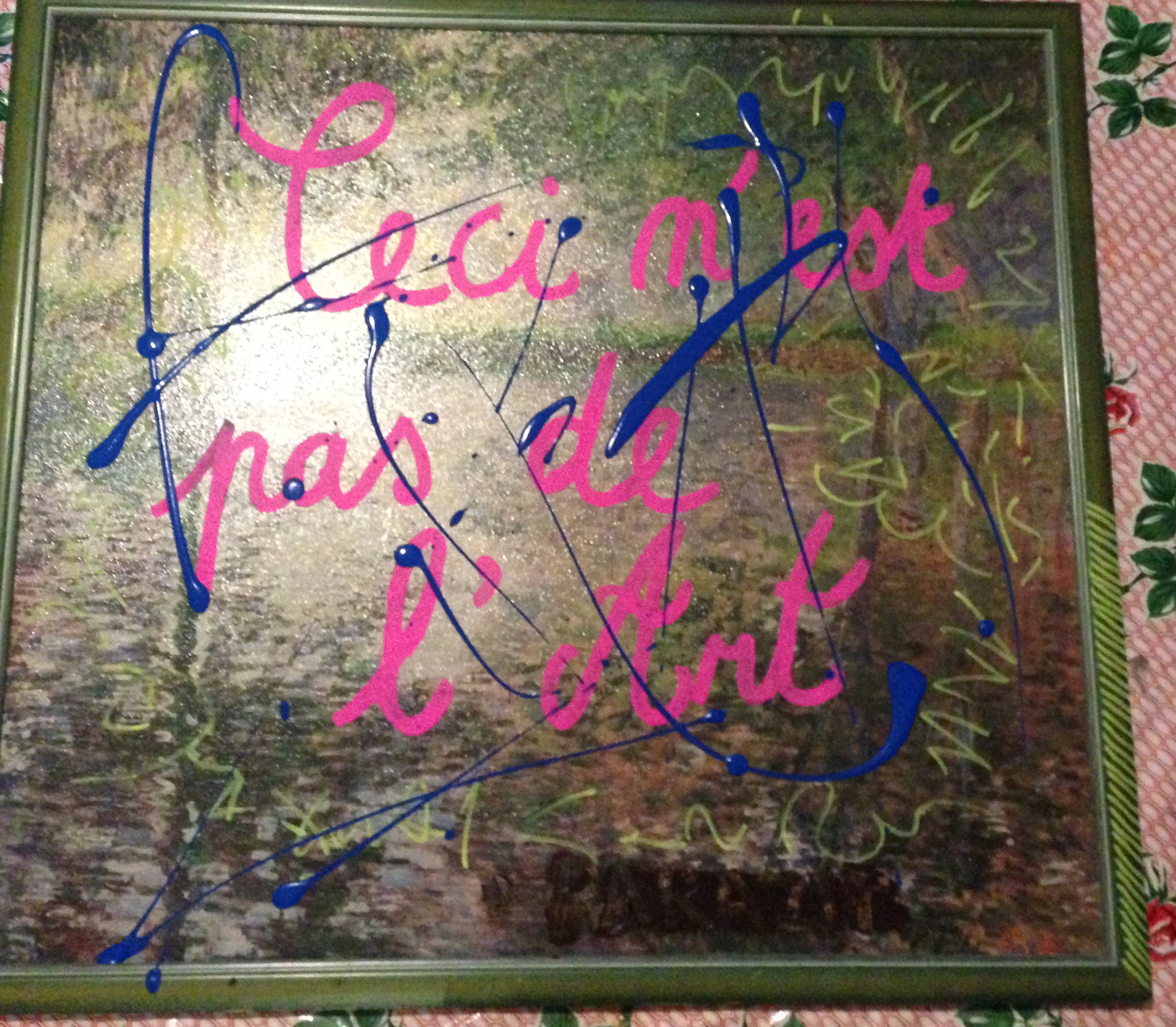 Reproduction encadrée de Monet que j’ai récupérée à la fin d’une collocation. J’en ai marre des impressionnistes, des musées, des livres chers. L’art est argent alors qu’il est essentiellement une recherche de sens, de vrai, de beau. Puis-je me permettre de clasher?