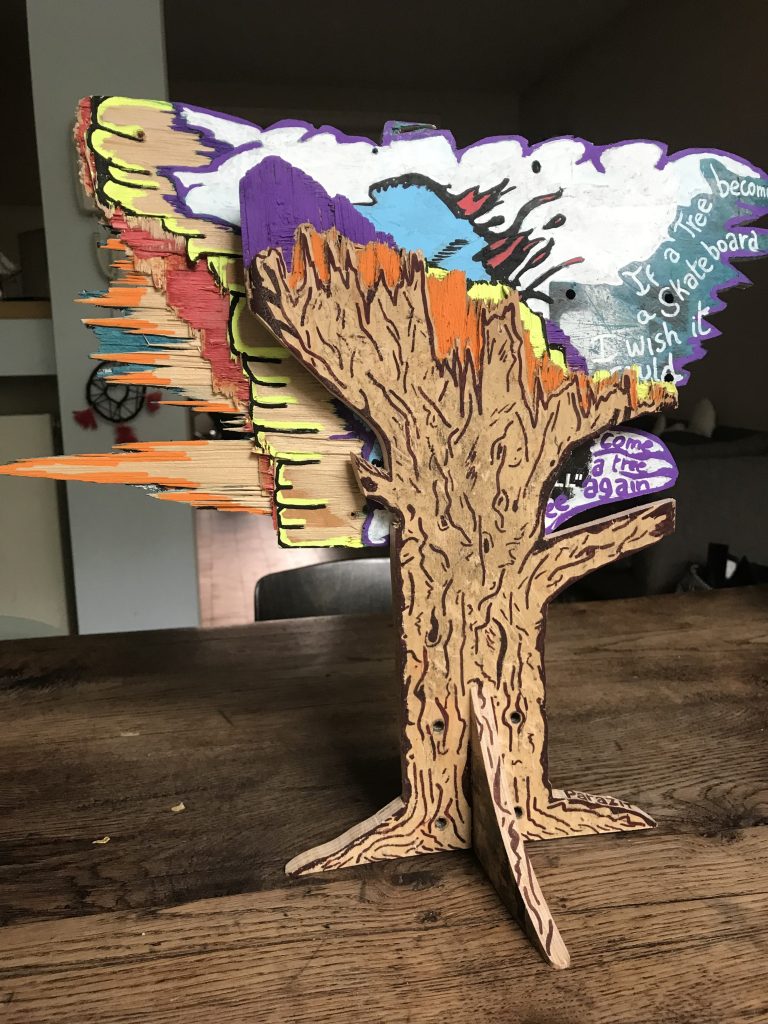 "Un parasite vit aux dépens de son hôte". Parazit est né des déchets: toiles abandonnées, skateboard (qu'il a) cassé. Le support accueille une douleur, un rêve, une fantaisie. Parazit explore une forme batarde d'art naïf, d'humour, de recyclage, présenté ici en galerie virtuelle. En rue (voir "Expositions"), ces productions prennent une dimension étrange et honorent l'oeuvre originale, changent les codes pour bousculer légèrement le spectateur.